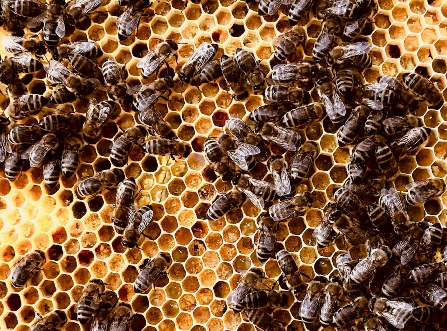 Das Bienenbrot - oder auch Perga genannt - besteht im Wesentlichen aus Blütenpollen und heißt deshalb so, weil es das Grundnahrumgsmittel der Bienen ist. Häufig wird angenommen, das wäre der Honig, der im Grunde eher den Treibstoff darstellt, schließlich besteht dieser überwiegend aus Zucker und damit Kohlenhydraten, die der schnellen Energiegewinnung dienen. Bienenbrot hingegen besteht zu einem großen Teil aus Proteinen, die wichtig für die Entwicklung der Brut aber auch für die ausgewachsene Biene sind. Da die Honigbiene alles im Überfluss sammelt, wird der Pollen, der nicht unmittelbar benötigt wird, in Zellen eingelagert, wie im Bild an den bunten Zellen in der Wabe zu sehen ist.