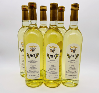 Wer denkt, Met muss immer süß sein, der liegt falsch! Unser Met hat drei von fünf Bienen und ist somit für einen Met halbtrocken mit angenehmer Süße und erfrischend herbem Abgang. Eine ganz neue Erfahrung! Dieser halbtrockene Met ist zur Zeit noch im Fass und wartet darauf, abgefüllt zu werden.